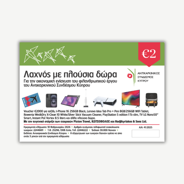 Λαχνός για την οικονομική ενίσχυση του φιλανθρωπικού έργου του Αντικαρκινικού Συνδέσμου Κύπρου