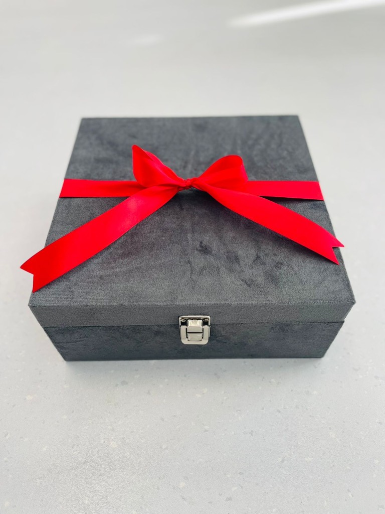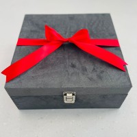 Κουτί αποθήκευσης ξύλινο γκρι βελουτέ 24Χ24Χ10cm