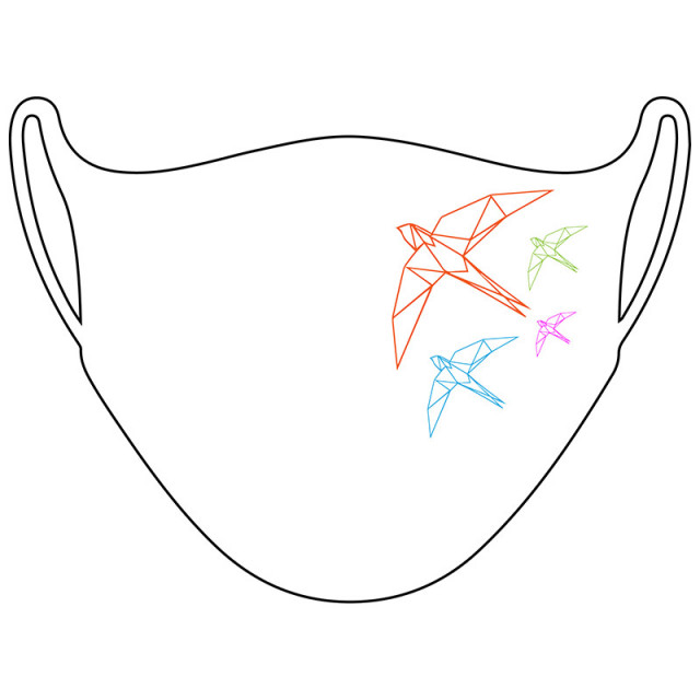 Άσπρη μάσκα με Χρωματιστά Οριγκάμι Χελιδόνια