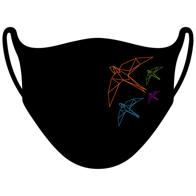 Μαύρη μάσκα με Χρωματιστά Οριγκάμι Χελιδόνια