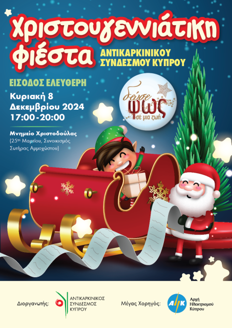 Ο Αντικαρκινικός Σύνδεσμος Κύπρου σας προσκαλεί σε μια ξεχωριστή εκδήλωση γεμάτη χαρά, δημιουργία και ζεστασιά, για να στηρίξουμε μαζί έναν σπουδαίο σκοπό!