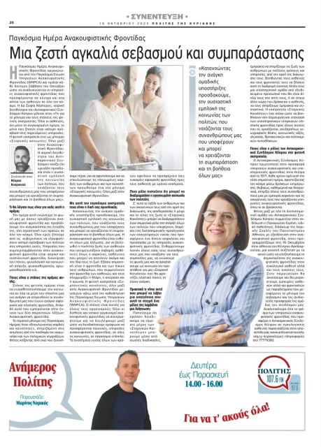 Μια ζεστή αγκαλιά σεβασμού και συμπαράστασης, Συνέντευξη στην ΔΡ ΣΟΦΙΑ ΝΕΣΤΟΡΟΣ